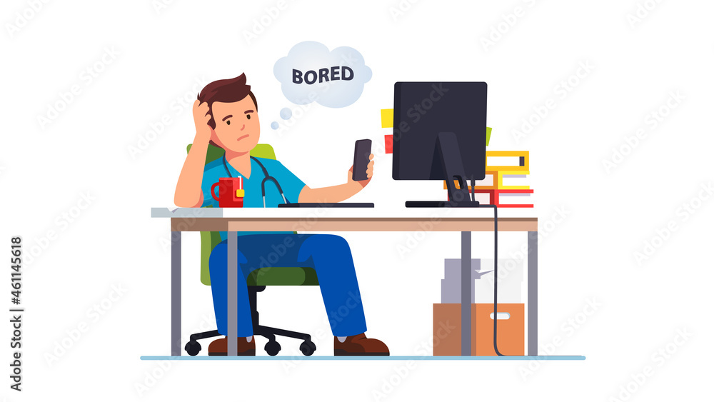 Doctor Medical Worker Bored At Work With Phone Stock Vector Adobe Stock