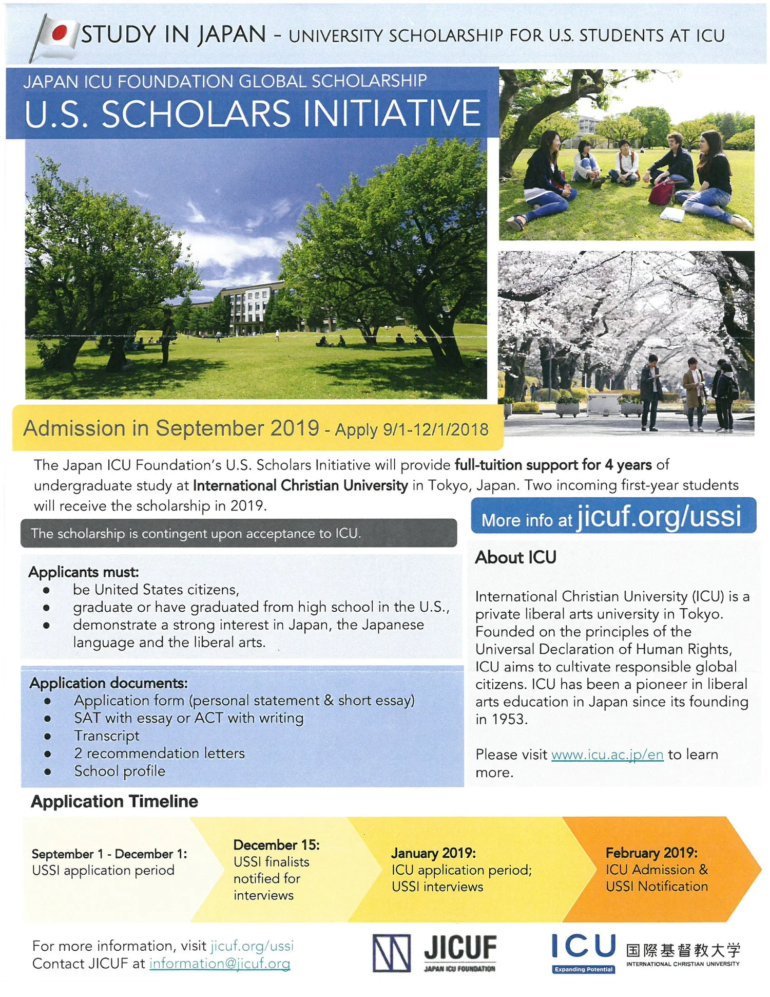 Japan Icu Foundation Full Tuition Scholarship Opportunity For Us Students Japan America Society Of Houston